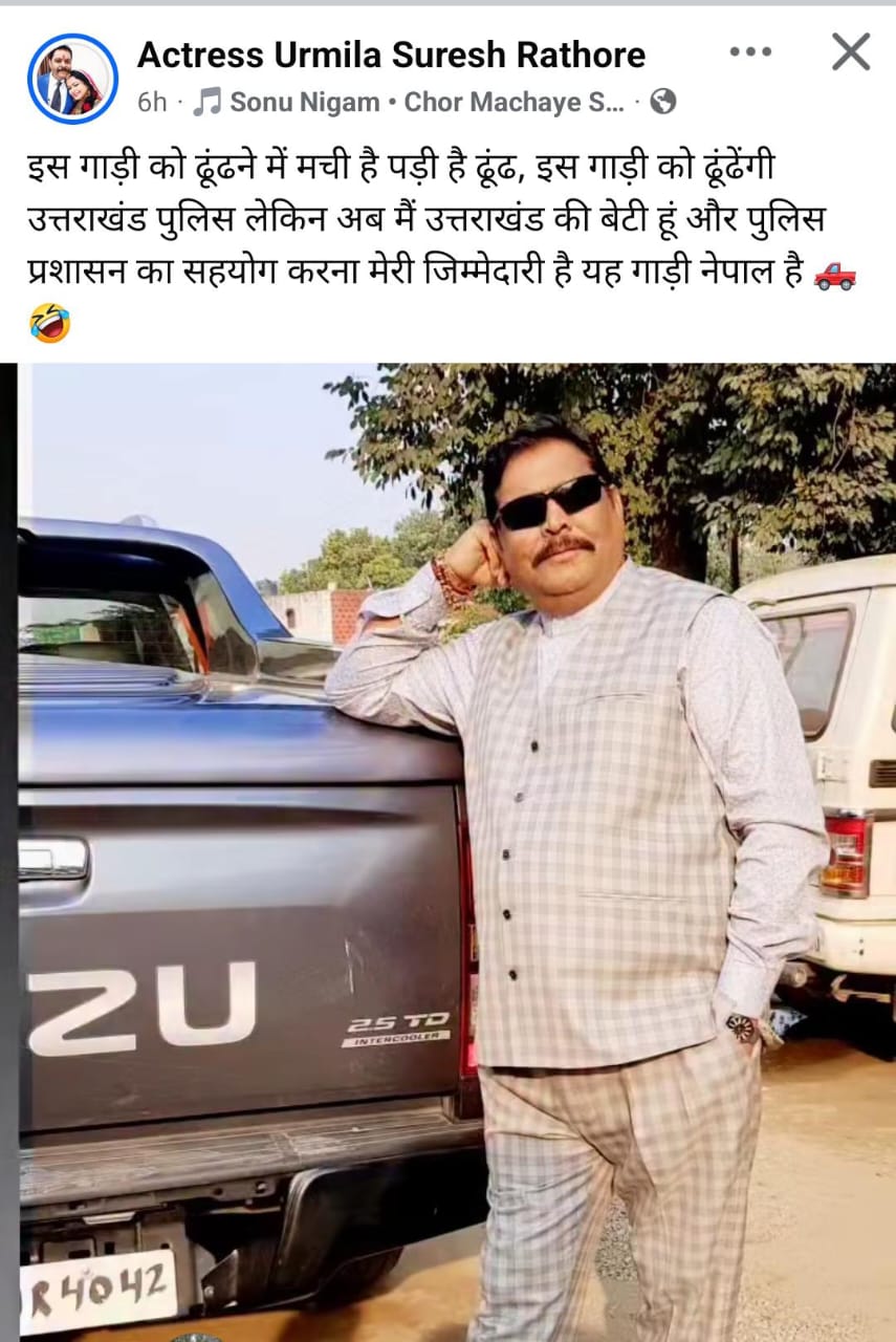इस गाड़ी को ढूंढने में मची है पड़ी है ढूंढ, इस गाड़ी को ढूंढेंगी उत्तराखंड पुलिस लेकिन अब मैं उत्तराखंड की बेटी हूं और पुलिस प्रशासन का सहयोग करना मेरी जिम्मेदारी है यह गाड़ी नेपाल है।
